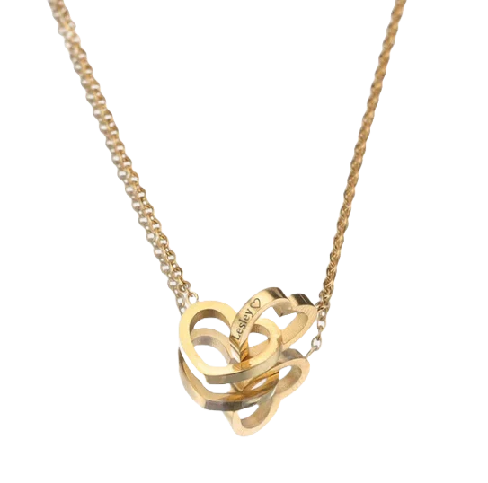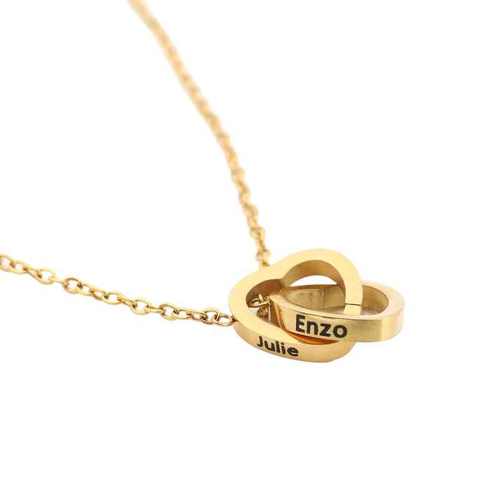 Our heart-displaced pendant in 316L stainless steel and 18-carat gold-plated is durable